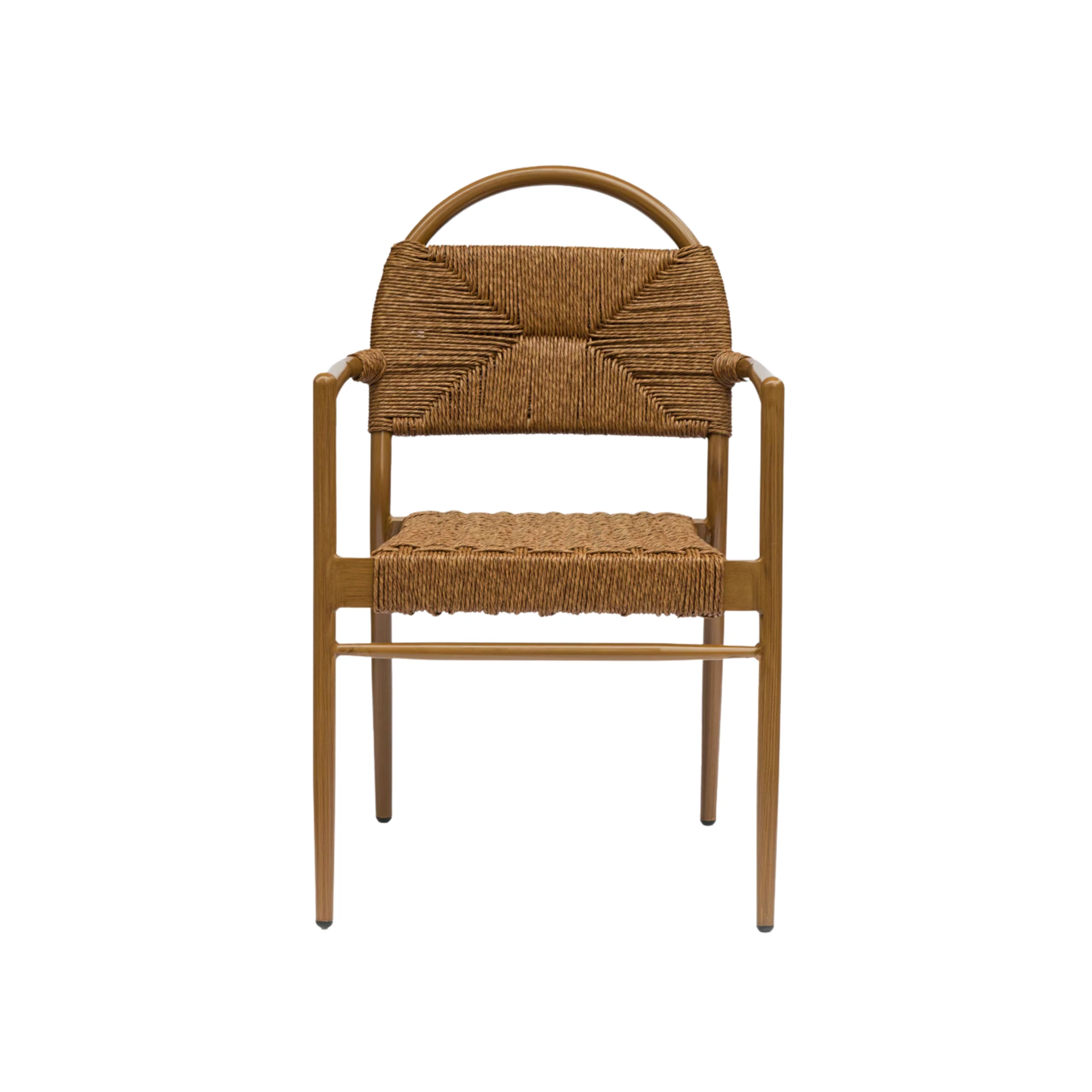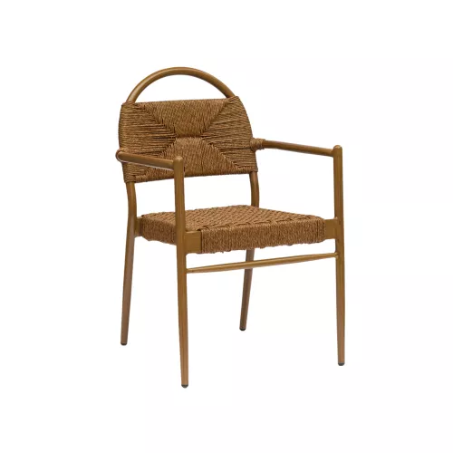 Aluminiumstuhl mit Rattangeflecht, entwickelt für den Einsatz in gastronomischen Außenbereichen. Leicht und langlebig, geeignet für Terrassen, Cafés und Restaurants.