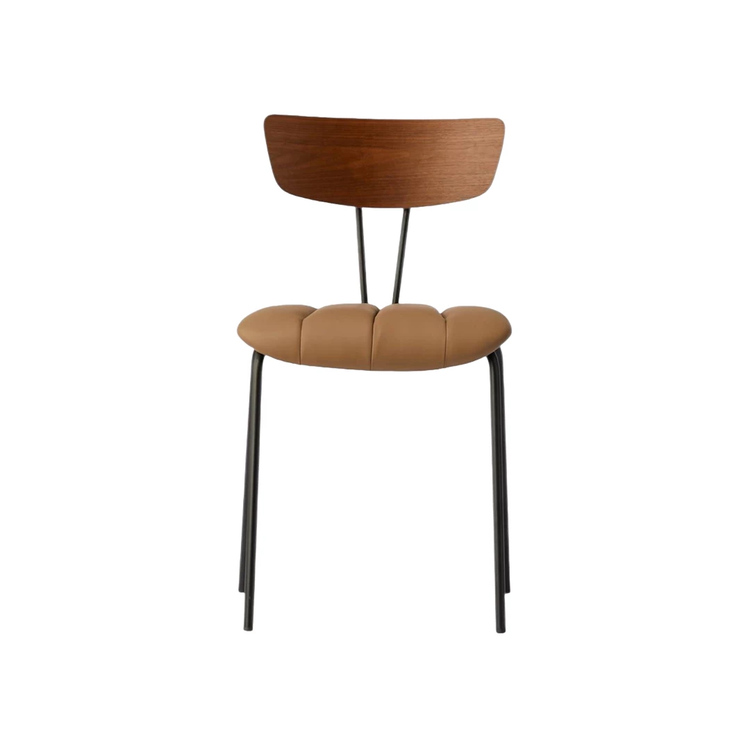 Summer ist ein eleganter Metallstuhl mit Stahlrahmen, gepolstertem Sitz und Rückenlehne aus Holz, erhältlich in verschiedenen Beiztönen. Die Polsterung ist in einer Vielzahl professioneller Stoffe oder Kunstleder erhältlich. Perfekt für moderne HoReCa-Bereiche mit Stil.