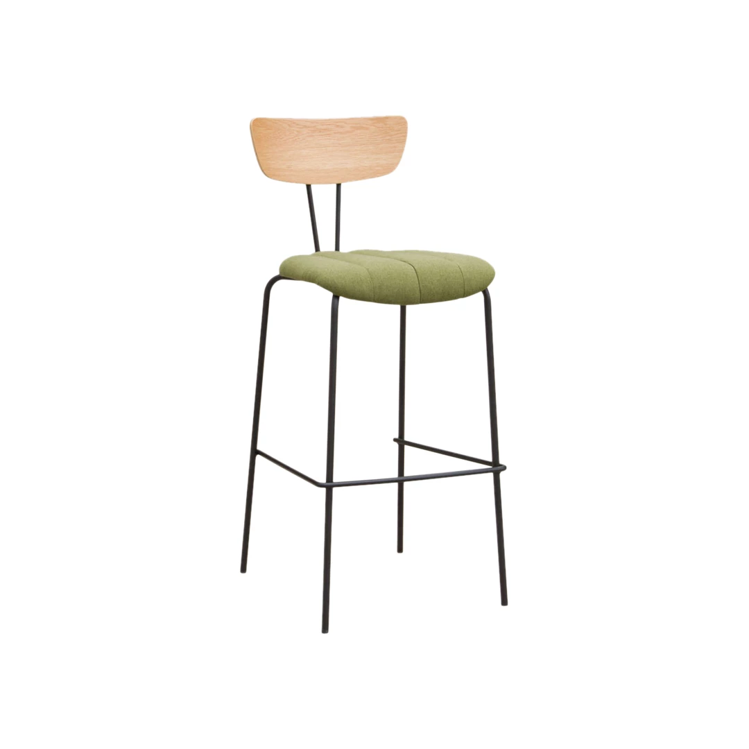 Der Summer BK Barhocker besticht durch sein robustes Stahlgestell, eine gepolsterte Sitzfläche und eine Rückenlehne aus Holz. Die Polsterung ist in vielen professionellen, strapazierfähigen Stoffen erhältlich. Mit Metallfußstütze eignet er sich ideal für Bars und vielfältige Gastronomiebereiche.