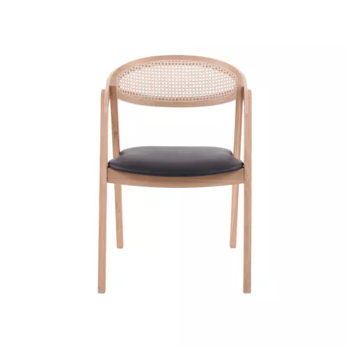 Dieser stilvolle Stuhl wird aus hochwertigem Eichen- oder Buchenholz gefertigt – zwei Holzarten, die für ihre Stabilität und Langlebigkeit bekannt sind. Ein schützender Polyurethanlack sorgt für eine robuste Oberfläche, die alltäglichen Beanspruchungen standhält und sich sowohl für private als auch gewerbliche Räume eignet.
