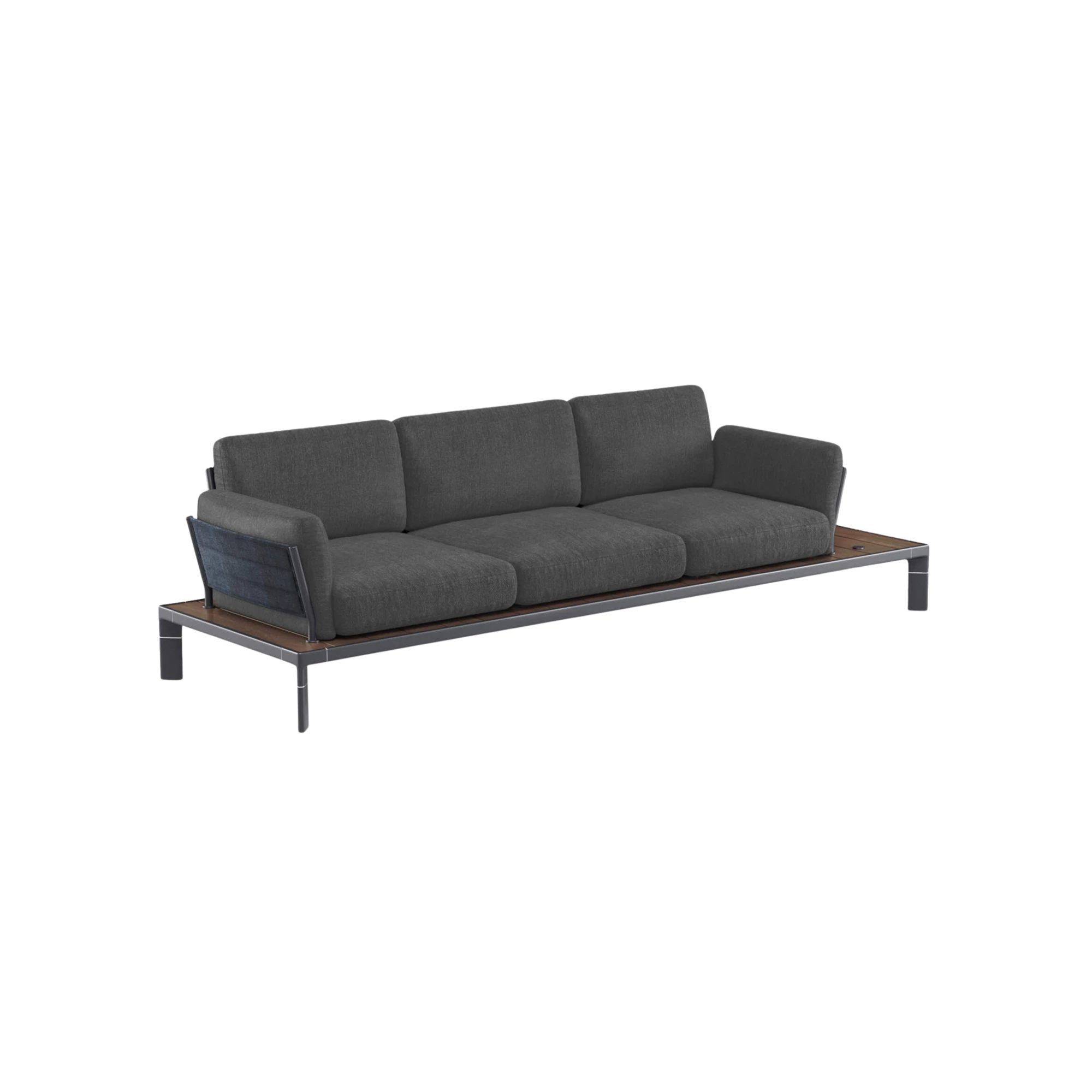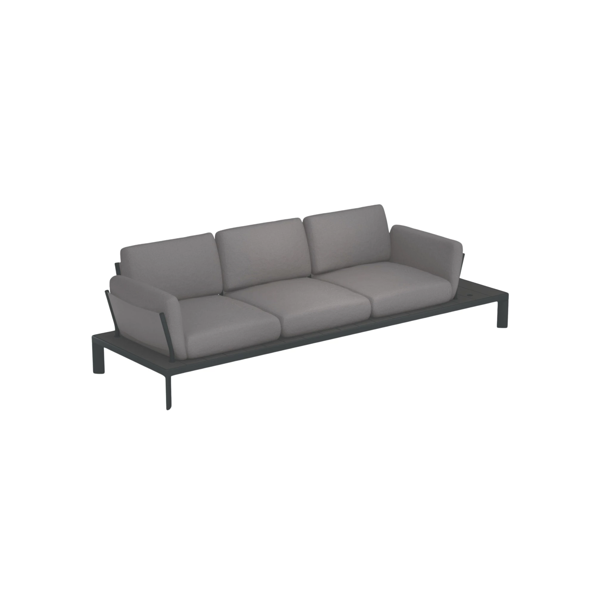 Die Tamy 3-Sitzer Sofa ist eine vielseitige und stilvolle Lösung für Ihre Außen- oder gewerbliche Sitzbedürfnisse. Dieses Sofa verfügt über ein Aluminiumgestell in weiß oder schwarz, das für Restaurants, Cafés und Bistros ein modernes Design bietet. Das Armlehnenrahmen und das Rückenlehnenrahmen werden mit hochwertigem Stoff geliefert, der Komfort und Langlebigkeit bei allen Wetterbedingungen gewährleistet. Die Sitzkissen, Rückenlehnenkissen und Armlehnenkissen bestehen aus Acryl, was nicht nur langanhaltende Unterstützung bietet, sondern auch eine elegante und pflegeleichte Oberfläche. Ideal für die Verwendung auf Terrassen, kombiniert das Tamy Sofa Komfort mit Funktionalität und ist die perfekte Sitzgelegenheit für stark frequentierte kommerzielle Räume. Sein elegantes Design und die robuste Struktur machen es zu einem Muss für einladende Außenbereiche.