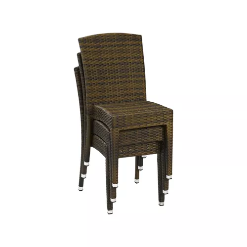 Titus Brown S ist ein eleganter Outdoor-Stuhl für den professionellen Einsatz im Horeca-Bereich. Der pulverbeschichtete Aluminiumrahmen und die Sitz-/Rückenfläche aus flachem P.E.-Wicker in verbrannter Farbe bieten Beständigkeit gegen UV und Wetter. Stapelbar bis zu 8 Stück. Optional mit wasserabweisendem Sitzkissen erhältlich.