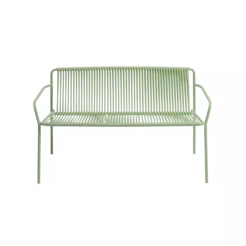 Inspiriert vom einladenden Charme des Mid-Century-Designs für den Außenbereich, bietet dieses Zweisitzer-Sofa eine moderne Interpretation klassischer Terrassenmöbel. Die stapelbare Konstruktion besteht aus einem Ø20 mm Stahlrohrrahmen mit einer robusten Pulverbeschichtung für den Außenbereich. Sitzfläche und Rückenlehne sind aus vertikal gewebtem, extrudiertem PVC mit Nylonkern gefertigt und garantieren so Flexibilität, Witterungsbeständigkeit und langanhaltenden Komfort. Speziell für den Außenbereich konzipiert, eignet es sich ideal für Terrassen, Gärten, Poolbereiche und Gastronomiebetriebe.