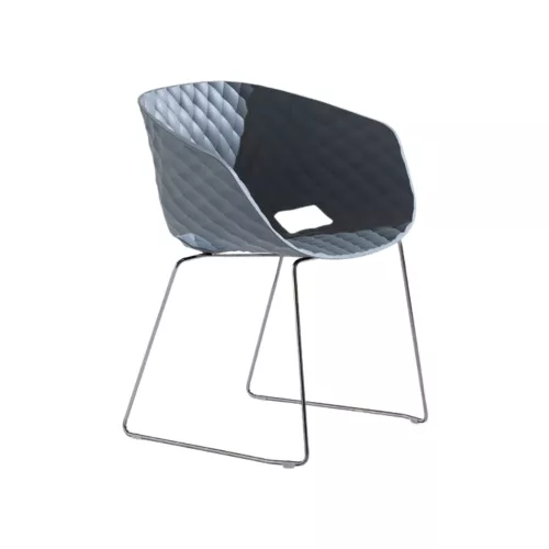 Uno 595 ist ein Horeca-Stuhl mit Armlehnen, einem stabilen Kufengestell aus pulverbeschichtetem oder verchromtem Stahl und einer Schale aus Polypropylen. Die Farbauswahl und Wetterbeständigkeit machen ihn ideal für den Innen- und Außenbereich und verschiedenste Gastronomiekonzepte.