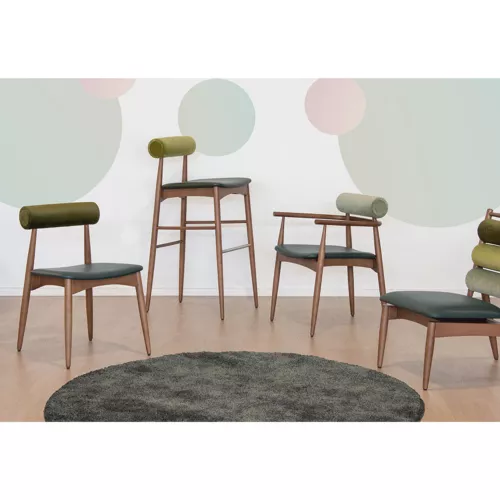 Yoto A ist ein stilvoller Restaurantstuhl für den Innenbereich mit einem stabilen Buchenholzrahmen, der Langlebigkeit und Komfort garantiert. Sitzfläche und Rückenlehne sind mit zwei verschiedenen Stoffen bezogen, was spannende Kombinationen in Farbe und Textur ermöglicht. Diese besondere Gestaltung verleiht jedem Raum eine individuelle Note – ideal für Restaurants, Hotels oder Lounges mit gehobenem Ambiente.