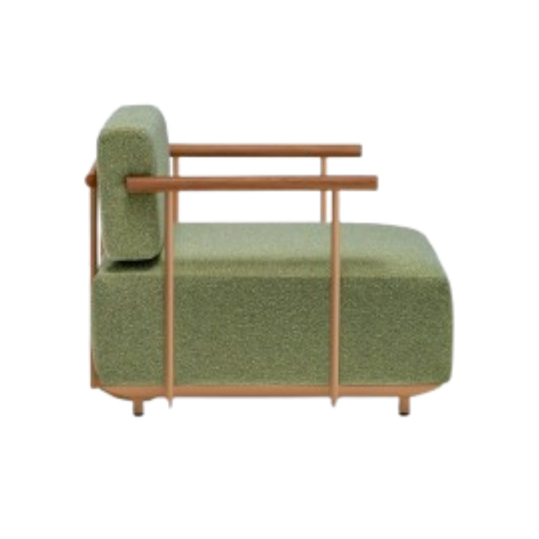 Das Arki-Sofa Plus ASP0010/0111/0012 verfügt über weiche Polyurethanschaumkissen mit wasserabweisenden Bezügen, die auf einem stranggepressten Aluminiumrahmen mit elastischen Gurten und Edelstahlbeinen ruhen. Die 40 mm starke Rückenlehne und die Armlehnen aus Edelstahl und Teakholz machen dieses Sofa zu einem stilvollen und langlebigen Möbelstück, ideal für Lounges und Restaurants.