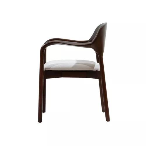 Der Stuhl Arven vereint zeitloses Design mit dauerhaftem Komfort. Sein Holzrahmen und die Rückenlehne werden durch einen weich gepolsterten Sitz ergänzt, während die abgerundeten Linien der Armlehnen für eine unverwechselbare, elegante Optik sorgen. Erhältlich in einer breiten Auswahl an professionellen Stoffen, ist Arven ideal für Gastronomiebetriebe, die Wert auf Stil und Langlebigkeit legen.