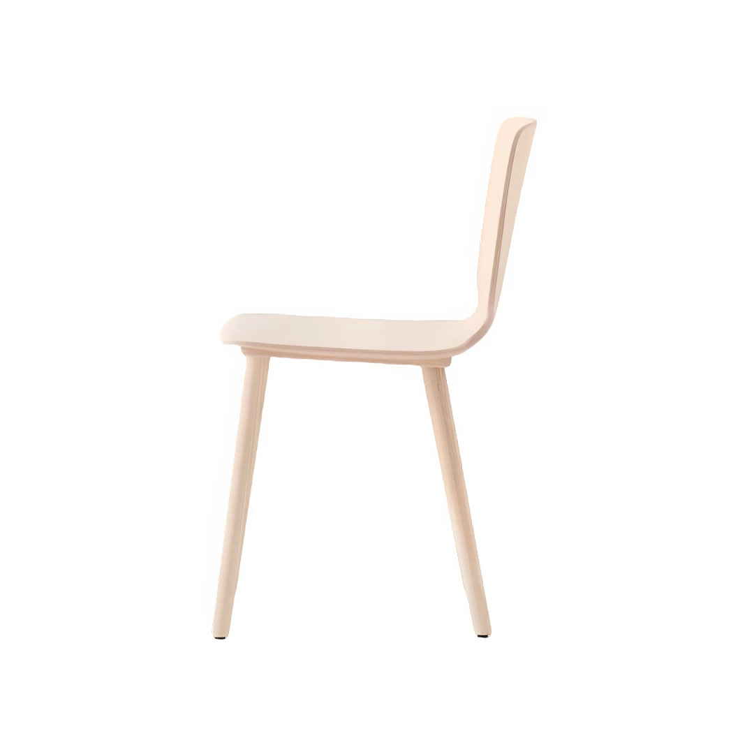 Die Sitzfläche aus Eschenfurnier mit variabler Stärke sorgt für eine ergonomische Form, die sowohl optische Leichtigkeit als auch Komfort bietet. Die Beine aus massivem Eschenholz verleihen dem Stuhl Stabilität und natürliche Eleganz, ideal für verschiedene Umgebungen – von modernen Esszimmern bis zu stilvollen Büroräumen.