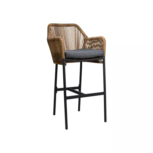 Der Terrassen-Barstuhl Baleric wurde speziell für anspruchsvolle Horeca-Umgebungen entwickelt und besticht durch Stil und Langlebigkeit. Mit seinem robusten anthrazitfarbenen Aluminiumrahmen und UV-beständigem Seilgeflecht an Rücken- und Armlehnen verbindet er Langlebigkeit mit moderner Ästhetik. Ideal für den Außenbereich, passt sein edles Design gleichermaßen zu Hotels, Restaurants und Cafés. Erhältlich in Braun, Grün, Blau und Grau, bietet der Baleric vielfältige Anpassungsmöglichkeiten. Er verfügt über ein bequemes Kissen und ist ergonomisch geformt für optimalen Sitzkomfort. Ein passender Terrassenstuhl ist ebenfalls erhältlich und somit die perfekte Lösung für harmonische Horeca-Terrassen.