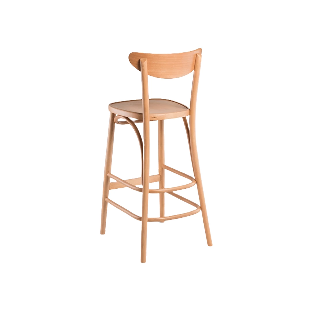 Der Holzbarhocker Banana BK zeugt von zeitloser Handwerkskunst durch traditionelles Biegen von Buchenholz. Sein massiver Buchenrahmen und die hölzerne Fußstütze sorgen für Langlebigkeit und Komfort, während die natürlichen Rundungen ihm einen edlen, klassischen Look verleihen. Erhältlich in verschiedenen Holzfarben, ideal für Bars, Bistros und Gastronomie.