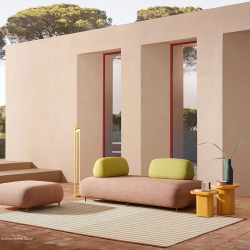 Dank des vollständig wasserdichten Bezugs und der herausnehmbaren Outdoor-Futterbezüge ist die Pflege kinderleicht und die Langlebigkeit garantiert. Mit der verstellbaren Rückenlehne aus Polyurethanschaum, die sich durch eine sanft geschwungene, organische Form auszeichnet, lässt sich der Pouf im Handumdrehen in ein bequemes Sofa verwandeln – und passt sich so flexibel verschiedenen Räumen und Anlässen an.