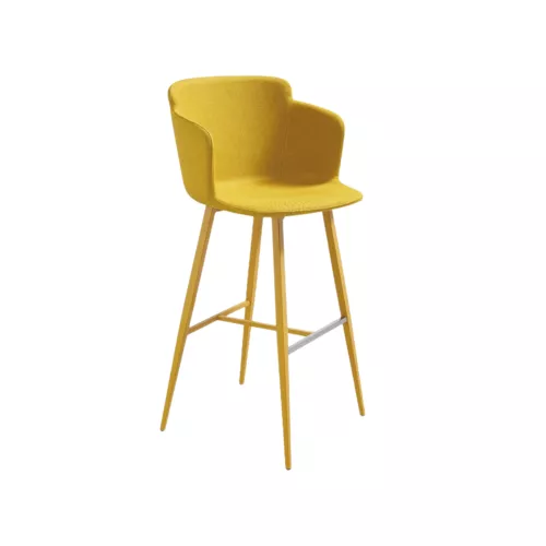 Eleganter Barhocker mit Armlehnen, stabilem vierbeinigem Metallgestell und gepolsterter Sitzschale aus Stoff, Leder oder Kunstleder. Die Version mit Kunststoffsitzschale ist für den Außenbereich geeignet und bietet vielseitige Einsatzmöglichkeiten im Innen- und Außenbereich. Erhältlich in zwei Höhen – H65 und H75 – vereint dieser Barhocker modernes Design, Komfort und Langlebigkeit und ist somit die perfekte Ergänzung für stilvolle Bars, Cafés und Restaurants.