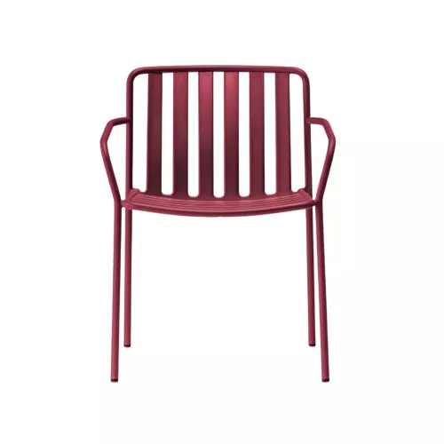 Coney ist eine Outdoor-Sitzkollektion, die Funktionalität, Komfort und markantes Design vereint. Dieser Armlehnstuhl besteht vollständig aus einem einzigen Material und verfügt über ein gebogenes, robustes Rohrgestell, das Stabilität und Leichtigkeit kombiniert. Sitz und Rückenlehne bilden eine dreidimensionale Struktur, die ergonomischen Halt und Festigkeit gewährleistet. Gleichmäßig angeordnete vertikale Lamellen der Rückenlehne, geformt aus Metallblech, bilden zusammen mit den horizontalen Lamellen der Sitzfläche ein unverwechselbares Muster. Coney eignet sich perfekt für urbane Außenbereiche, Restaurantterrassen oder private Balkone und Gärten.