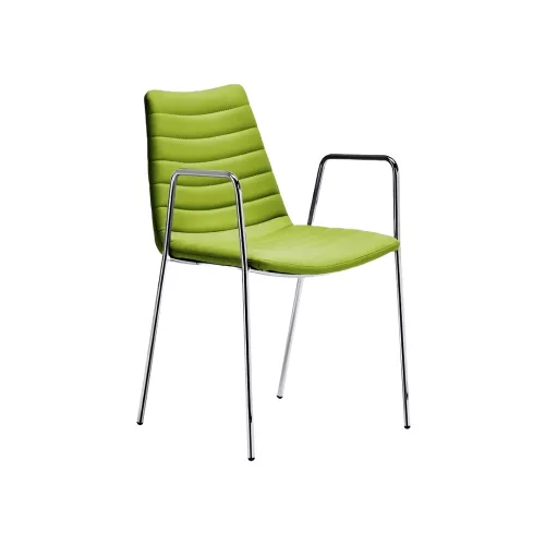Der Polsterstuhl Cover P M TS mit Metallarmlehnen vereint Raffinesse und Eleganz mit funktionalem Design. Sein vierbeiniges Metallgestell, wahlweise lackiert oder verchromt, trägt eine komfortable Polsterschale. Bis zu vier Stühle sind stapelbar. Der Stuhl ist in einer großen Auswahl an professionellen Stoffen oder Kunstleder für vielseitige Einrichtungsstile erhältlich.