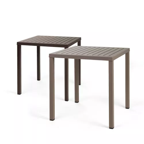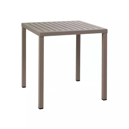 Cube 70 ist ein moderner, stapelbarer Outdoortisch für den Gastronomiebereich. Aus UV-beständigem Polypropylen mit beschichteten Aluminiumbeinen. Tischplatte 70x70 cm, auch in 80x80 cm erhältlich. Wetterfest und langlebig.