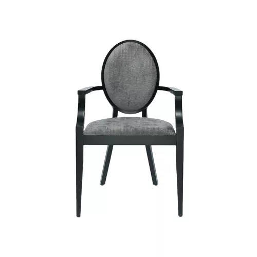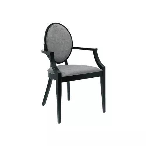 Der Stuhl Doris A ist ein Bestseller, der zeitlose Eleganz und Komfort verkörpert. Seine markante, elliptische Rückenlehne und die weiche Polsterung verleihen ihm eine edle Optik, die durch die eleganten Armlehnen noch unterstrichen wird. Gefertigt aus robustem Buchenholz und in verschiedenen Ausführungen und Stoffen erhältlich, ist Doris A die ideale Wahl für stilvolle Gastronomiebetriebe.