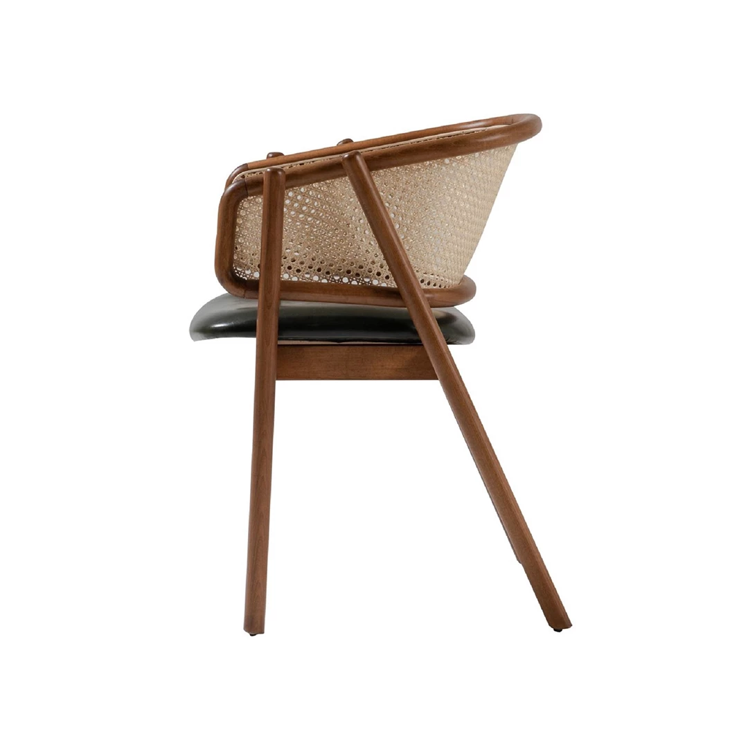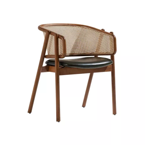 Der Stuhl Eleran vereint zeitlose Eleganz mit Komfort und Vielseitigkeit. Mit seinem robusten Buchenholzrahmen, der in verschiedenen Farben erhältlich ist, dem weich gepolsterten Sitz und der stilvollen Rückenlehne aus Rattan fügt er sich mühelos in unterschiedliche Einrichtungsstile ein. Der Sitzbezug ist in einer großen Auswahl an professionellen Stoffen oder Kunstleder erhältlich und macht ihn somit ideal für Restaurants, Hotels und andere Gastronomiebetriebe.