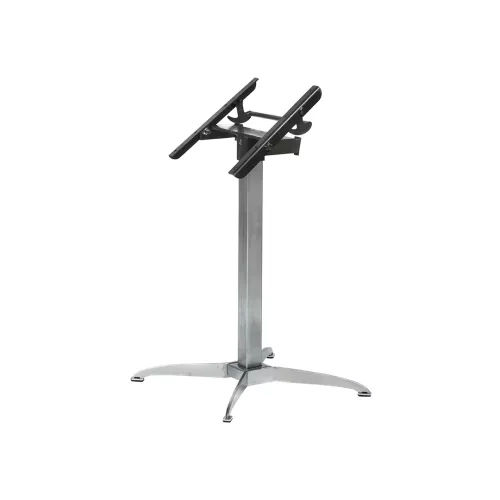Der Flexi Feet S Fold ist ein stabiler Stahl-Tischfuß mit praktischem Klappmechanismus für einfache Lagerung und Transport. Geeignet für Tischplatten bis 80x80 cm oder Ø100 cm, passen sich die mechanischen Füße unebenen Flächen an und gewährleisten stabile, wackelfreie Tische. Ideal für den Innen- und Außenbereich in der Horeca. Tischplatten separat erhältlich. Montage erforderlich.