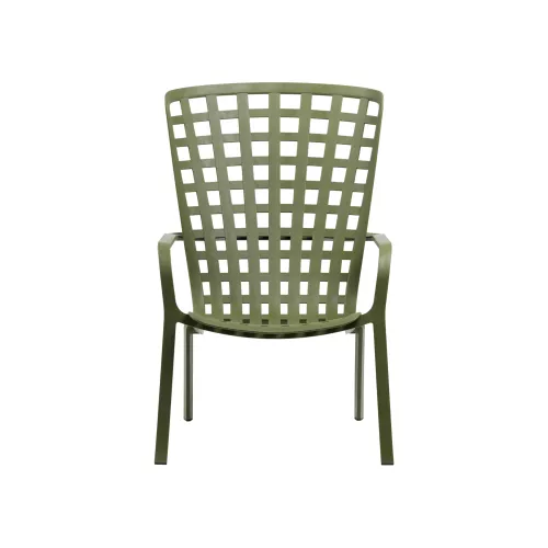 Folio ist ein stilvoller Relaxsessel für den Außenbereich mit einer umhüllenden Rückenlehne, die nahtlos in die großzügig abgesenkte Sitzfläche übergeht. Hergestellt aus glasfaserverstärktem Harz, zeigt er ein modernes, perforiertes Quadratmuster mit matter Oberfläche in eleganten Farben wie Weiß, Anthrazit, Tortora, Agave und Tabak. Der Sessel lässt sich in zwei bequeme Positionen verstellen und bietet so optimalen Komfort für entspannte Momente im Freien. Auf Wunsch sind passende Kissen erhältlich, speziell für den Außenbereich gefertigt aus Lino-Stoff, mit einem Aufpreis von etwa 40%. Die Kissen sind nicht abnehmbar und besitzen keinen Reißverschluss. Sie sind 7 cm dick, mit einem Schaumstoffkern aus Polyurethan (Dichte 18 kg/m³) gefüllt und mit Stoffriemen und Klettverschlüssen sicher befestigt. Die Farboptionen Arctic und Felce ergänzen die natürlichen Töne des Sessels perfekt. Folio ist die ideale Ergänzung für Terrassen, Gärten oder Außenbereiche, in denen Design auf Entspannung trifft.