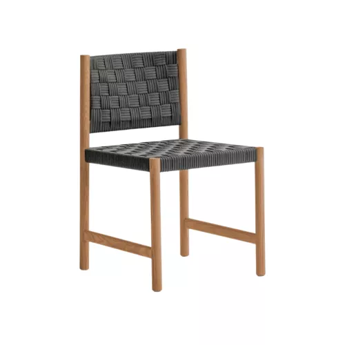 Griante interpretiert das Konzept von geflochtenen Sitzmöbeln neu und vereint traditionelle Handwerkskunst mit moderner industrieller Präzision. Die zylindrischen Beine sind filigran gedrechselt, während der Aluminiumrahmen für einen stabilen Sitz sorgt. Das Besondere an Griante ist die handgeflochtene Sitzfläche und Rückenlehne, die in Italien aus vollständig recycelbaren Polypropylen-Garnbändern mit einer raffinierten, dreidimensionalen Textur gefertigt werden. Das Flechtmuster, definiert durch die geometrische Wiederholung quadratischer Formen, betont die großzügigen Proportionen des Sitzes und unterstreicht seine elegante, einladende Ästhetik. Das Ergebnis ist ein Stuhl, der Raffinesse, Komfort und zeitloses Design verkörpert und gleichzeitig leicht zu demontieren und umweltfreundlich ist.
