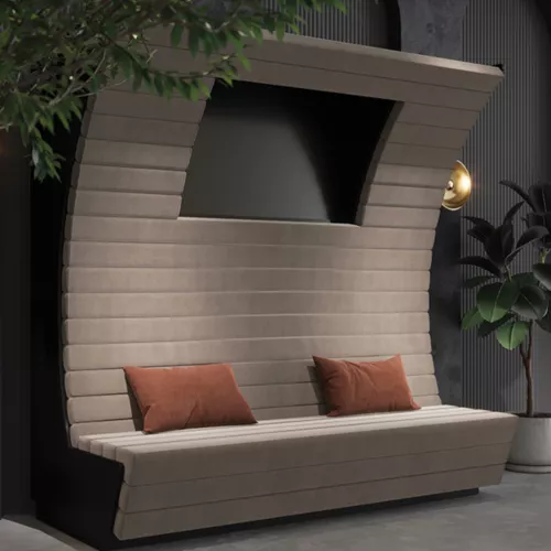Die Heaven Bench wurde entwickelt, um modernen Gastronomiebereichen Eleganz und Flexibilität zu verleihen. Mit ihrem schlanken Design verfügt die Bank über einen stabilen Rahmen, der entweder aus Metall oder Holz gefertigt werden kann, sodass sie sich nahtlos in jedes Interieur einfügt. Gepolstert mit hochwertigen Materialien, haben Sie die Wahl aus einer breiten Auswahl an professionellen Stoffen oder Kunstleder oder können auch Ihr eigenes Material für ein personalisiertes Finish wählen. Das ergonomische Design und die weichen Kissen sorgen nicht nur für Stil, sondern auch für außergewöhnlichen Komfort. Ob für Restaurants, Lounges oder Empfangsbereiche – die Heaven Bench wurde für langfristigen Wert und eine raffinierte Ästhetik in Ihrem Raum entwickelt.