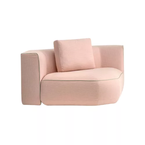 Das 90°-Eckelement verfügt über eine schräge Rückenlehne aus äußerst komfortablem, formbeständigem Polyurethanschaum, die auf einer Sperrholzplattform ruht, die von dezenten 3 cm hohen Füßen leicht erhöht wird. Ein stützendes Rückenkissen erhöht den Komfort im Lendenbereich, während der vollständig abnehmbare Stoffbezug die Reinigung einfach und unkompliziert macht.Regular cleaning of fabrics is recommended to maintain the appearance of textile coverings and extend their lifespan. Dust and dirt wear out the fabric, so regular vacuum cleaning (with less intense suction) is recommended. For stains it is essential to act quickly; liquids should be absorbed with a white absorbent cloth. Non-greasy stains can be removed by gently dabbing with a damp sponge or a lint-free white cloth. Evaluate effectiveness of cleaning agents on small, out-of-sight areas. Avoid using abrasive products, concentrates, solvents or bleaches. Please note that these suggestions are only recommendations and do not guarantee complete stain removal. Always refer to the technical and maintenance specifications mentioned on each specific technical sheet and the indications on any labels.