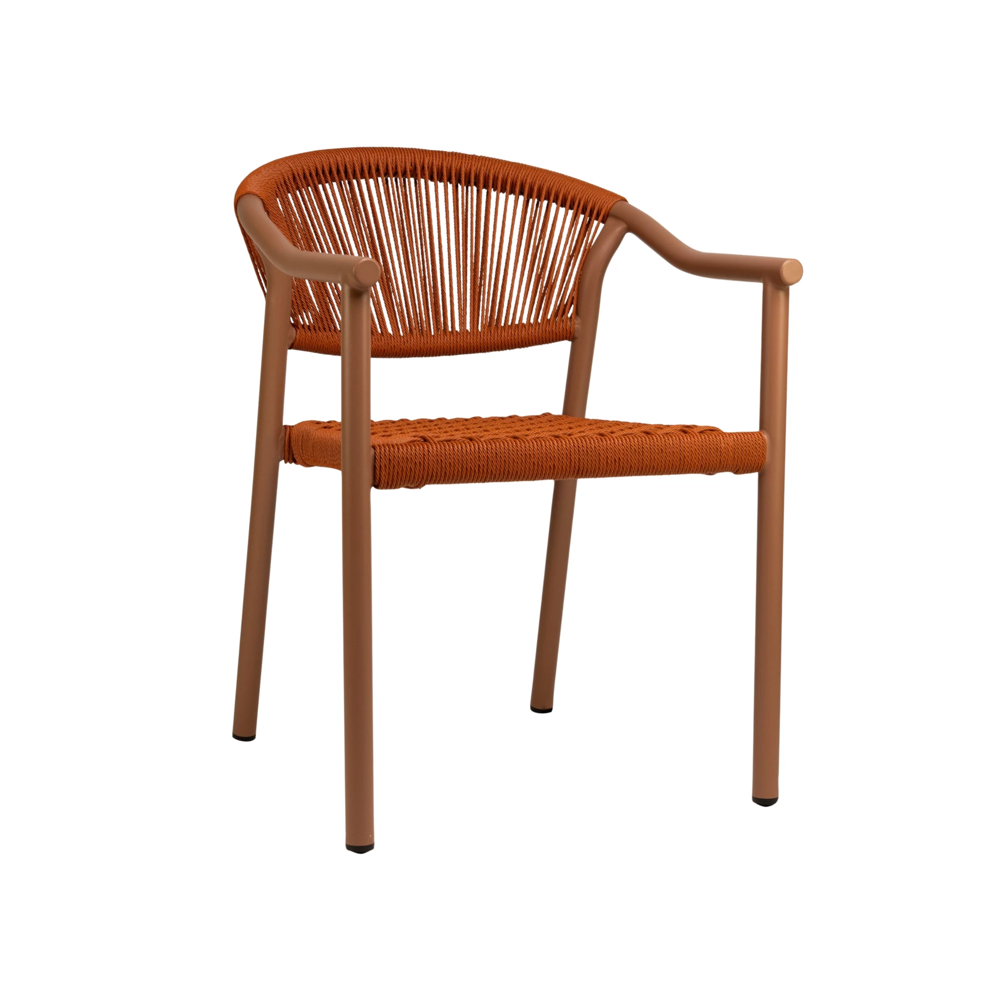 Erhältlich in Orange, Grün, Eiche/Natur und Eiche/Braun, lässt sich der Stuhl vielseitig in unterschiedliche Terrassenkonzepte integrieren. Dank der stapelbaren Konstruktion ist eine platzsparende Lagerung möglich.