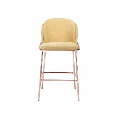 Jim BK 005 B ist ein eleganter Barhocker mit goldenem Metallgestell, gepolsterter Sitzfläche und Rückenlehne. Erhältlich mit zahlreichen professionellen Bezugsstoffen. Dank seines modernen Designs und der robusten Bauweise eignet er sich ideal für stark frequentierte Gastronomiebereiche.