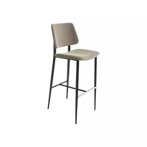 Ein raffinierter Hocker, der moderne Materialien mit natürlichen Akzenten vereint. Der lackierte Metallfuß sorgt für Stabilität und eine elegante Optik. Sitz und Rückenlehne können mit Leder, Öko-Leder oder Stoff bezogen werden, passend zu jedem Einrichtungsstil. Für einen zusätzlichen Hauch von Wärme und Charakter kann die Rückseite der Rückenlehne mit Holz verkleidet werden. Perfekt für Bars, Restaurants und elegante Gaststätten.