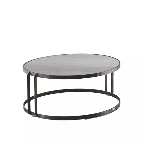 Joint L ist ein 35cm hoher Tisch mit 100cm runder Platte aus Keramik oder Leder. Der Stahlfuß ist in mehreren Farben erhältlich – ideal für stilvolle Horeca-Umgebungen wie Cafés, Hotels oder Lounges.