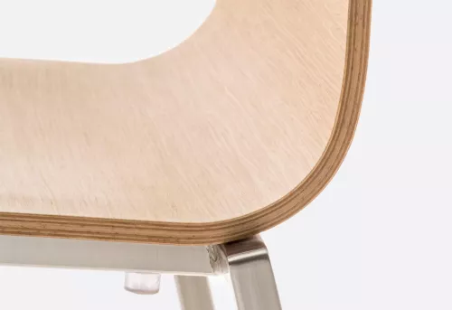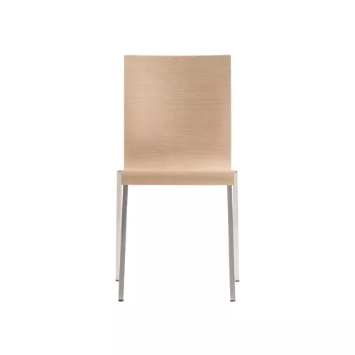 Kuadra 1321 vereint minimalistisches Design mit ergonomischem Komfort. Die ikonische, gebogene Sitzschale aus Eichenfurnier und der Stahlrahmen (20x20 mm) sorgen für Stabilität. Bis zu 8 Stühle stapelbar – ideal für moderne Räume.