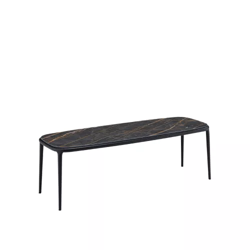 Lea CT L ist ein 34cm hoher Horeca-Tisch mit einer 108x39cm Platte aus Eschenfurnier oder Keramik. Der lackierte Stahlrahmen ist farblich variierbar – ideal für stilvolle Cafés, Lounges oder Hotels.