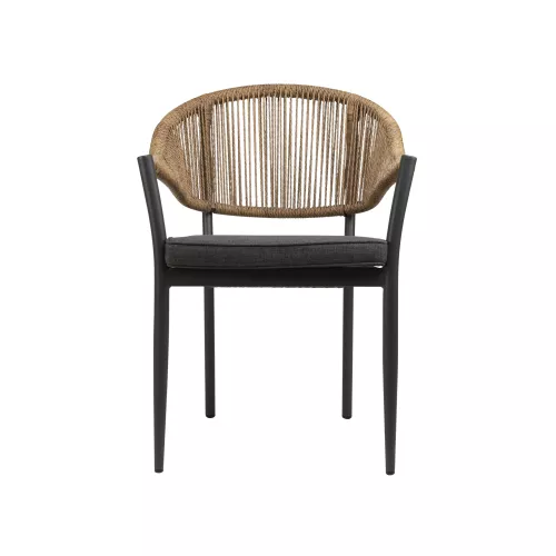 Die Rückenlehne ist in Anthrazit oder Natur erhältlich und lässt sich flexibel in unterschiedliche Terrassenkonzepte integrieren. Das dicke Sitzkissen in Anthrazit bietet hohen Sitzkomfort. Zudem ist der Stuhl stapelbar und ermöglicht eine platzsparende Lagerung.