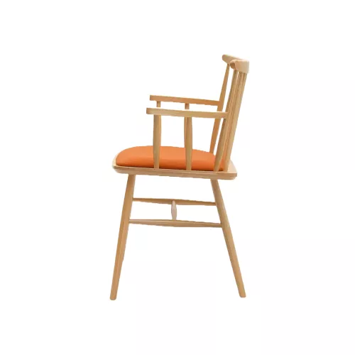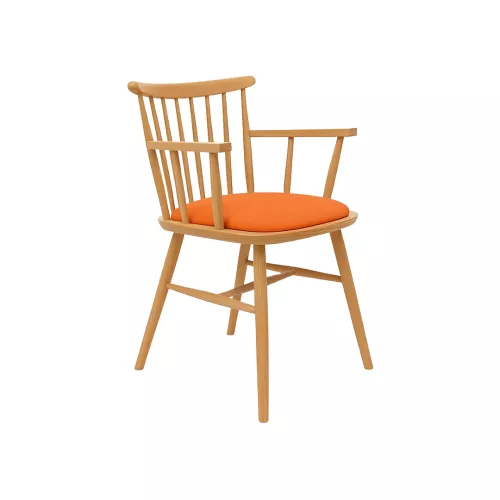 Der Stuhl Louisiana A UPH mit Armlehnen vereint traditionelles Design mit trendigem Vintage-Stil. Sein profiliertes Gestell, die schlanken, handgeschliffenen Rückenlehnenstreben und die geschwungene Querverstrebung ergänzen die einzigartige, hufeisenförmige Sitzfläche. Gefertigt aus Buchenholz, verfügt er über eine gepolsterte Sitzfläche und eine hölzerne Rückenlehne. Erhältlich in verschiedenen Holzfarben und Stoffen oder Kunstleder – perfekt für die Gastronomie.