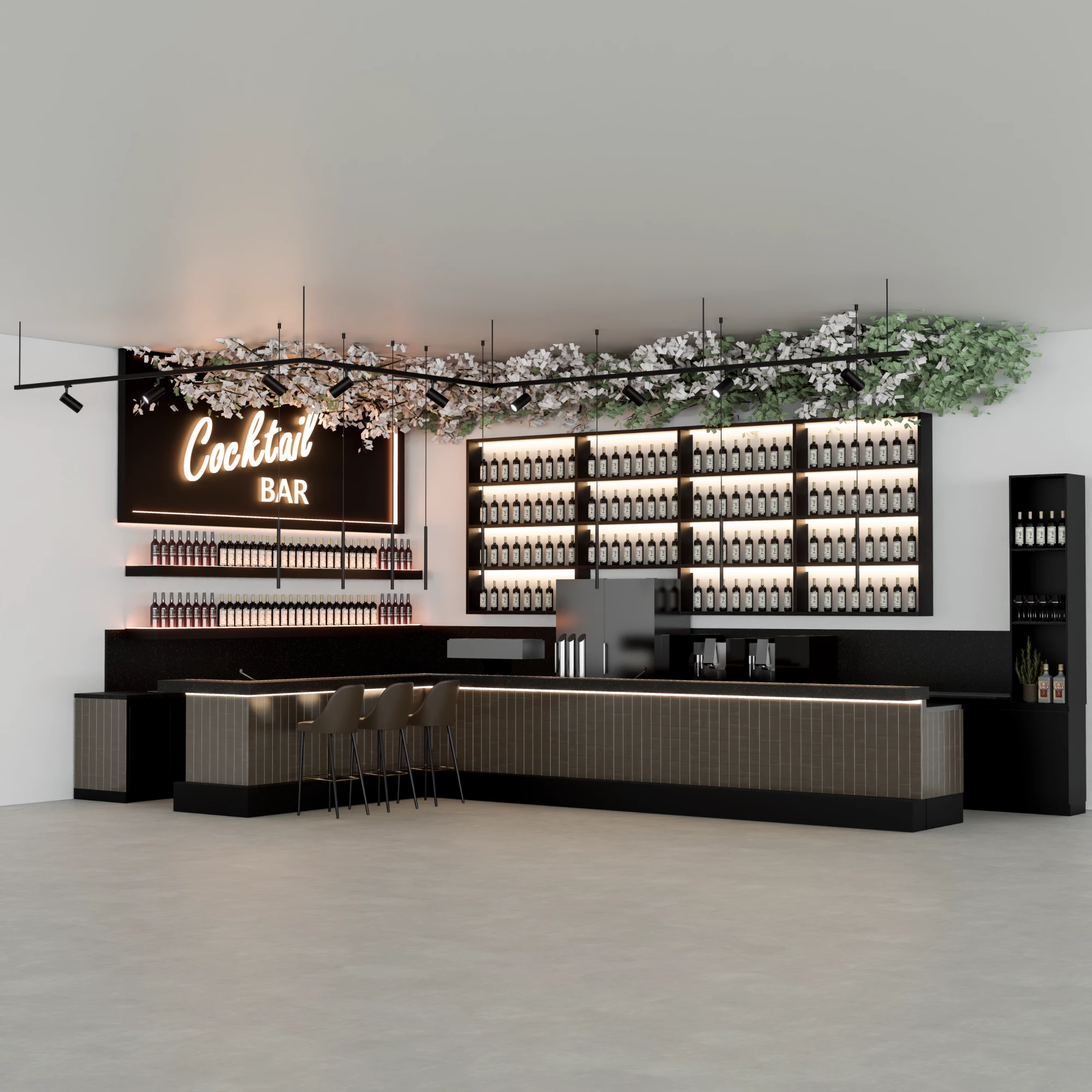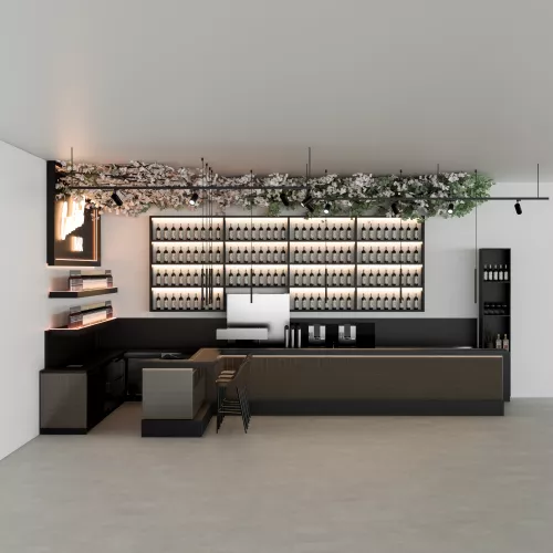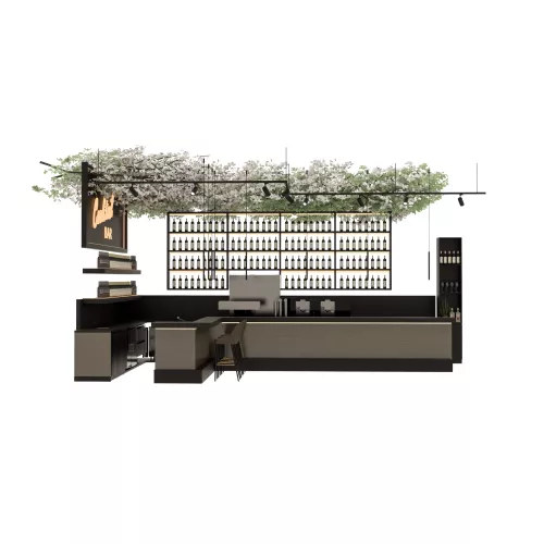 Ein individuell gestaltetes, modernes Barkonzept für stilvolle Cafés und Restaurants. Das gesamte Design ist in 3D verfügbar und bietet so eine klare und realistische Vorschau des finalen Looks.