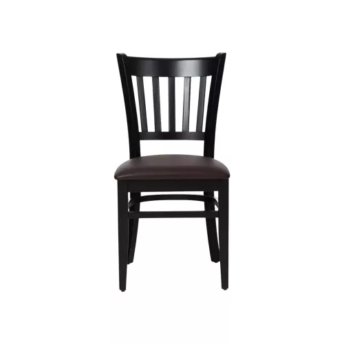 Dieser robuste Holzstuhl mit vertikalen Lamellen am Rücken ist für den anspruchsvollen Einsatz in der Gastronomie konzipiert. Alle Verbindungen sind von Hand verleimt und mit Eckblöcken und Stahlwinkeln verstärkt. Der Sitz kann individuell gepolstert oder mit einer lackierten Sperrholz- oder Massivholzsitzfläche geliefert werden. Optional sind auch gepolsterte Rückenlehnen innen und außen erhältlich. Der Stuhlrahmen ist in verschiedenen Oberflächen verfügbar, zudem ist ein passender Barhocker erhältlich.