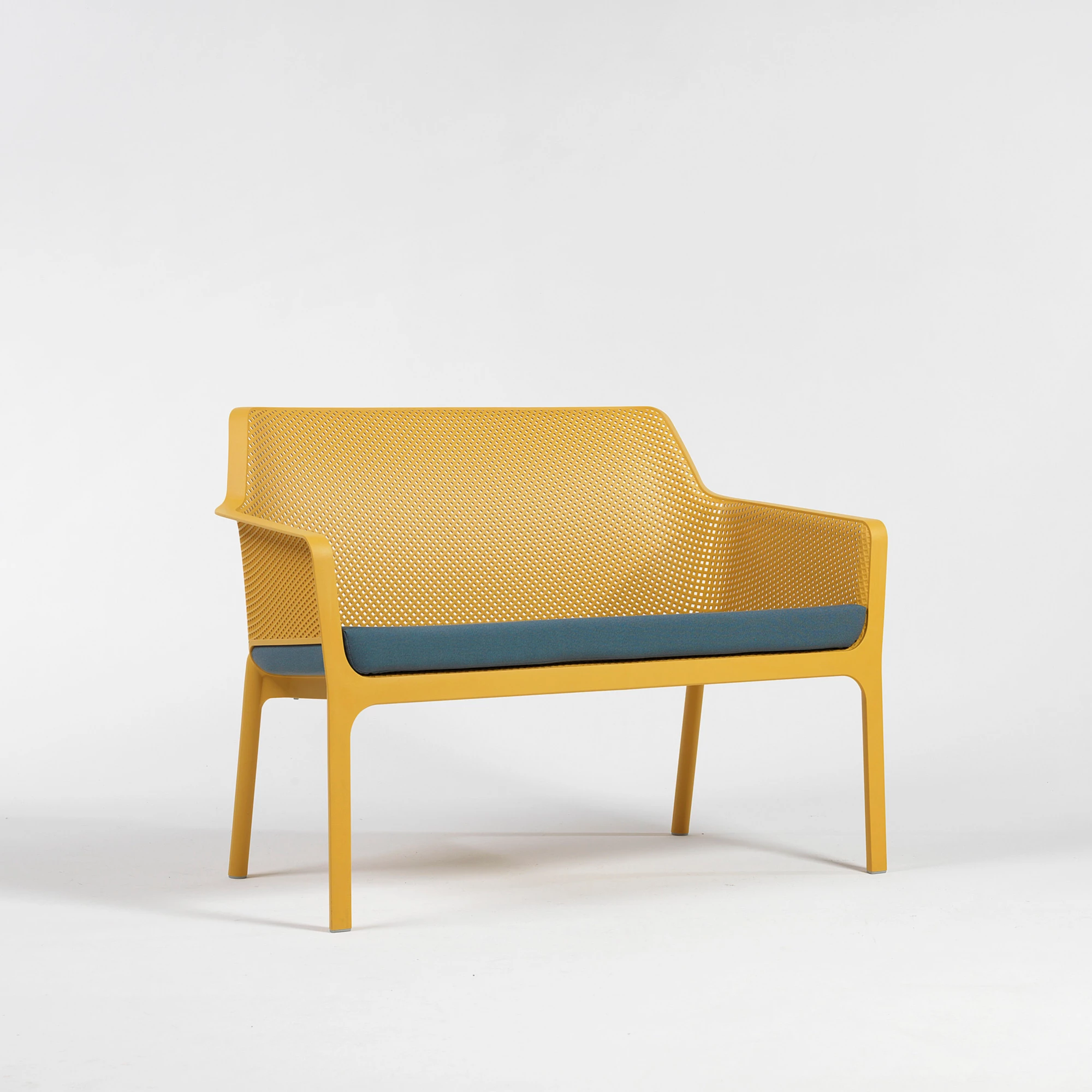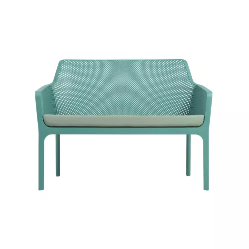Die Net Bench ist eine stilvolle und praktische Sitzlösung, entwickelt für höchste Ansprüche im gewerblichen Außenbereich. Hergestellt aus Monobloc-Glasfaser-Polypropylen mit UV-Zusätzen und matter Oberfläche, bietet sie hervorragende Haltbarkeit, Witterungsbeständigkeit und Farbstabilität. Mit rutschfesten Füßen und stapelbarem Design für einfache Lagerung. Erhältlich in sechs Rahmenfarben—Weiß, Anthrazit, Salice, Tortora, Senape, Coral—kombinierbar mit einem Sitzkissen aus Polyurethanschaum (Dichte 28 kg/m³) in Grey Stone, Rosa Quarzo, Senape, Denim, The Verde, Sardinia, Weiß oder Grau. Vollständig recycelbar und perfekt für Restaurantterrassen, Cafés und Bistros, die Komfort, Stil und Langlebigkeit verlangen.
