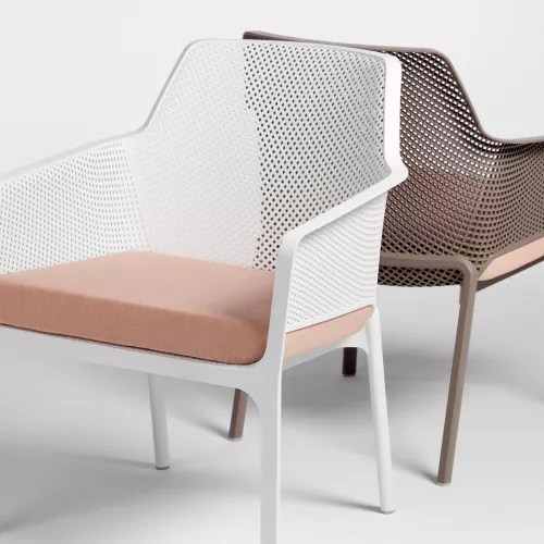 Der Net Relax Loungesessel vereint Komfort, Stil und Langlebigkeit für den professionellen Gastronomiebereich. Aus glasfaserverstärktem Polypropylen mit matter Oberfläche gefertigt, verfügt er über rutschfeste Füße und ein stapelbares Design für einfache Lagerung. Wetter- und UV-beständig, ideal für den intensiven Außeneinsatz. Erhältlich in Rahmenfarben Weiß, Anthrazit, Salice, Tortora, Senape, Coral sowie mit Sitzkissen aus Polyurethanschaum (Dichte 28 kg/m³) in Grey Stone, Rosa Quarzo, Senape, Denim, The Verde, Sardinia, Weiß oder Grau. Perfekt für Terrassenrestaurants, Cafés und Bistros mit hohen Ansprüchen an Design und Beständigkeit.