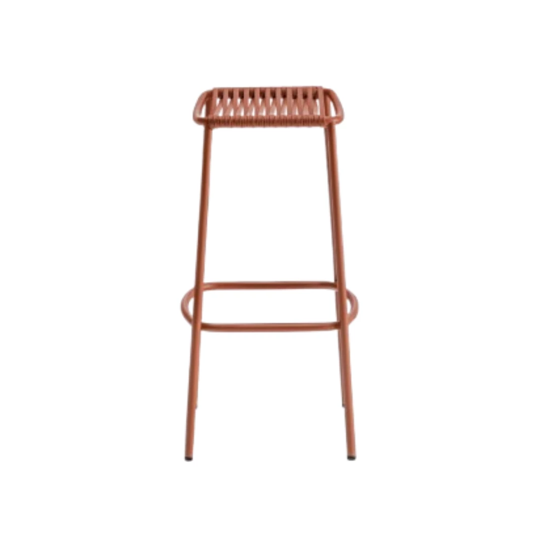 Philia 3908 ist ein Barhocker für den Außenbereich mit einem lackierten Stahlrohrgestell und einer Sitzfläche aus strapazierfähigem, extrudiertem PVC-Gewebe. Er ist auf Komfort und Langlebigkeit ausgelegt und eignet sich perfekt für Bars, Terrassen und Außenbereiche der Gastronomie – eine gelungene Kombination aus Funktionalität und modernem Design.