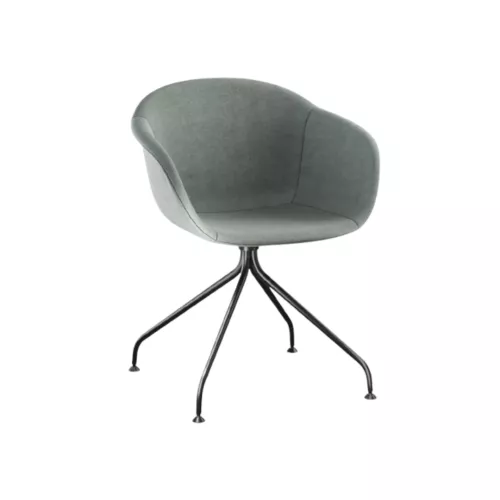 Der elegante Drehsessel Mahi Spider kombiniert ein robustes, pulverbeschichtetes, mattschwarzes Metallgestell mit stilvollen Akzenten aus Buchenholz. Mit seiner gepolsterten Sitz- und Rückenlehne aus Polyurethan und dem Bezug aus Ihrem Wunschmaterial bietet er höchsten Komfort und ein ansprechendes Design – ideal für moderne Cafés, Restaurants, Bistros und Wartebereiche.