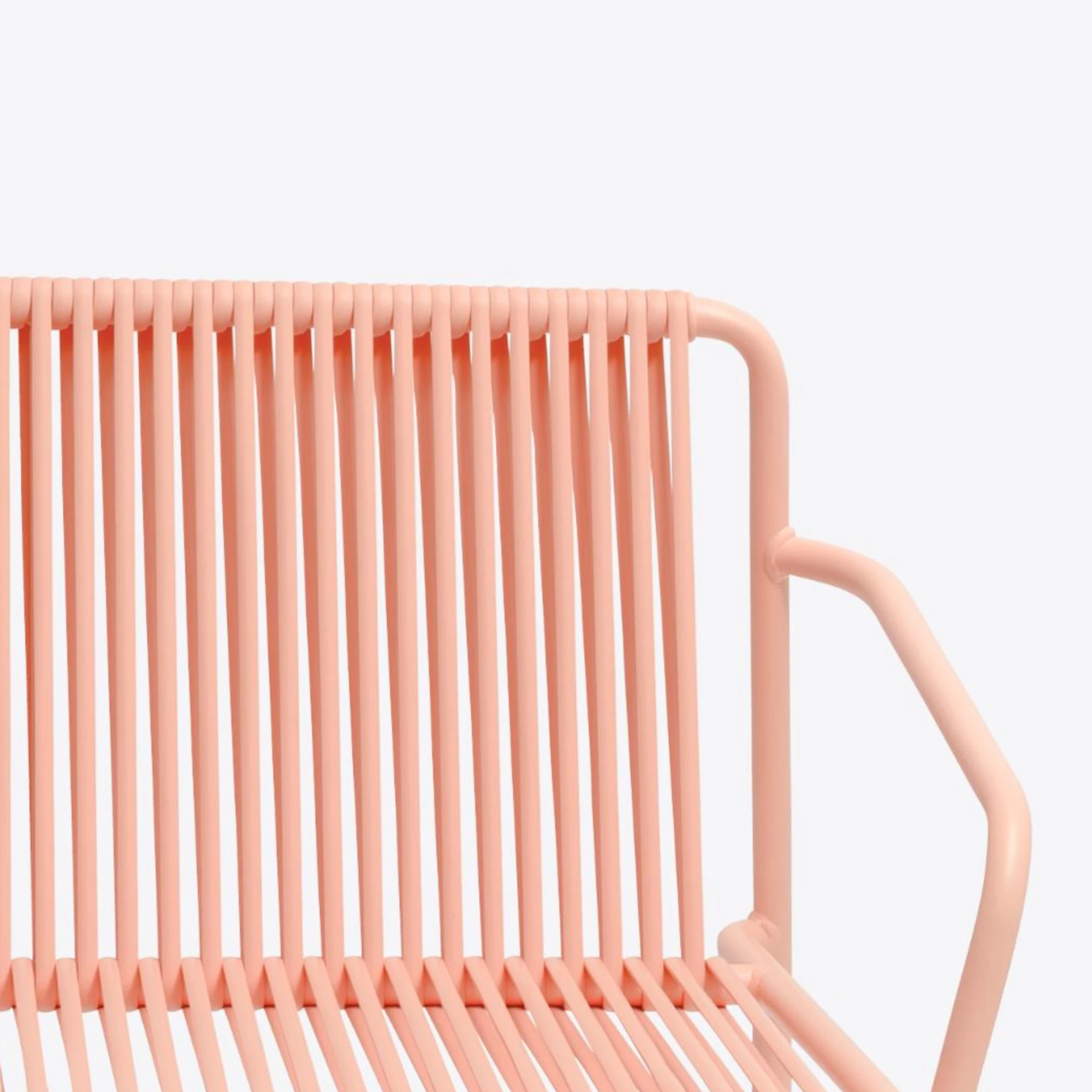 Inspiriert vom einladenden Charme des Mid-Century-Designs für den Außenbereich, bietet dieses Zweisitzer-Sofa eine moderne Interpretation klassischer Terrassenmöbel. Die stapelbare Konstruktion besteht aus einem Ø20 mm Stahlrohrrahmen mit einer robusten Pulverbeschichtung für den Außenbereich. Sitzfläche und Rückenlehne sind aus vertikal gewebtem, extrudiertem PVC mit Nylonkern gefertigt und garantieren so Flexibilität, Witterungsbeständigkeit und langanhaltenden Komfort. Speziell für den Außenbereich konzipiert, eignet es sich ideal für Terrassen, Gärten, Poolbereiche und Gastronomiebetriebe.