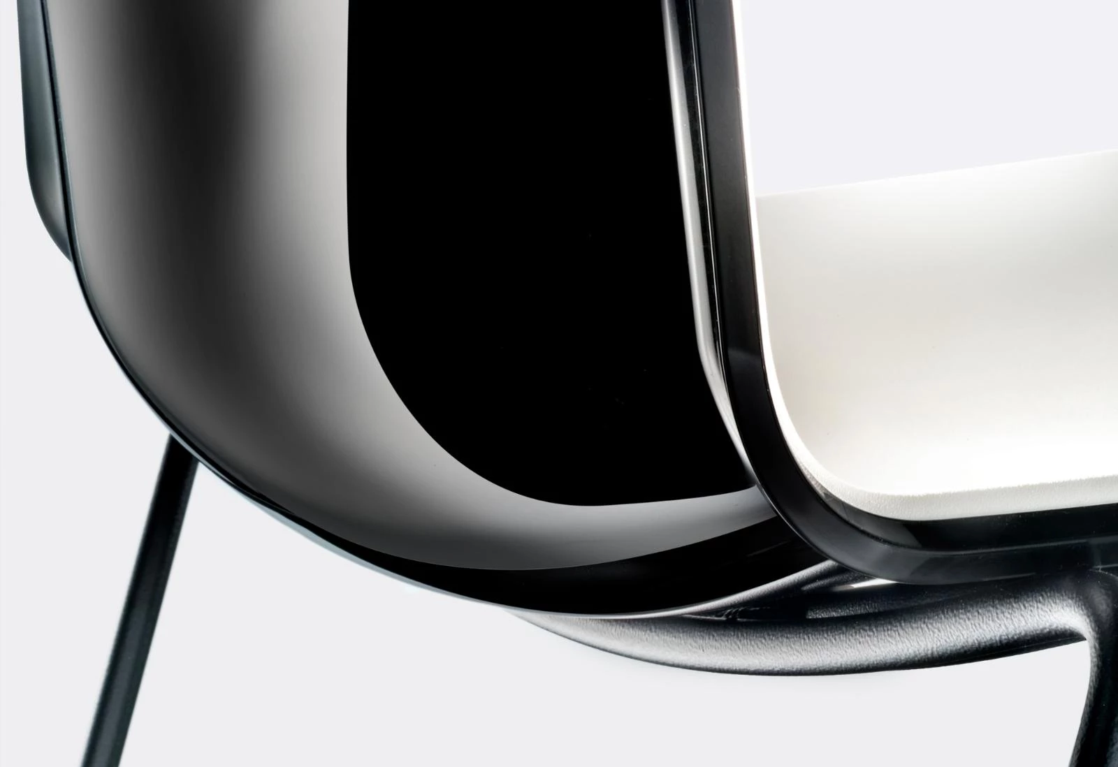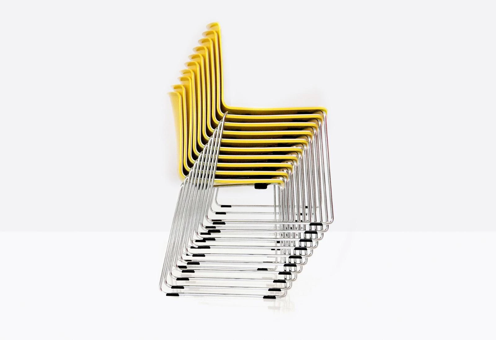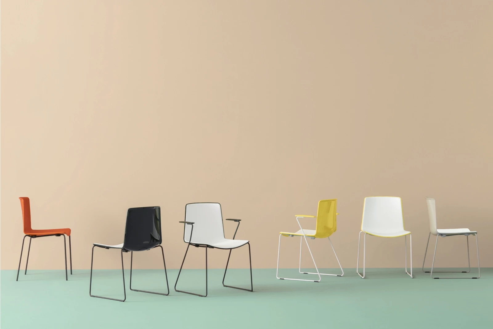 Der Stuhl Tweet 897 vereint klares Design mit hoher Funktionalität. Die doppelspritzgegossene Polypropylenschale ruht auf einem Ø11 mm Stahlrohr-Kufenrahmen, ist antistatisch und UV-beständig. Stapelbar bis zu 20 Stück, erhältlich in Uni- oder Bicolor-Ausführung und diversen Gestelloberflächen.