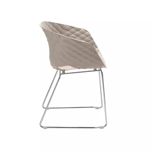 Uno 595 ist ein Horeca-Stuhl mit Armlehnen, einem stabilen Kufengestell aus pulverbeschichtetem oder verchromtem Stahl und einer Schale aus Polypropylen. Die Farbauswahl und Wetterbeständigkeit machen ihn ideal für den Innen- und Außenbereich und verschiedenste Gastronomiekonzepte.