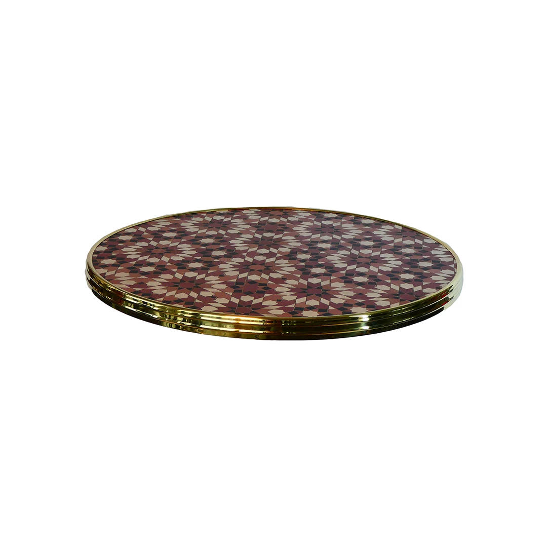 Die Werzalit Bistroplatte mit Ring ist für den intensiven Einsatz in der Gastronomie im Innen- und Außenbereich konzipiert. Mit Messingring, UV- und hitzebeständig, bruch- und stoßfest sowie pflegeleicht. Erhältlich in vielen Größen und Dekoren.