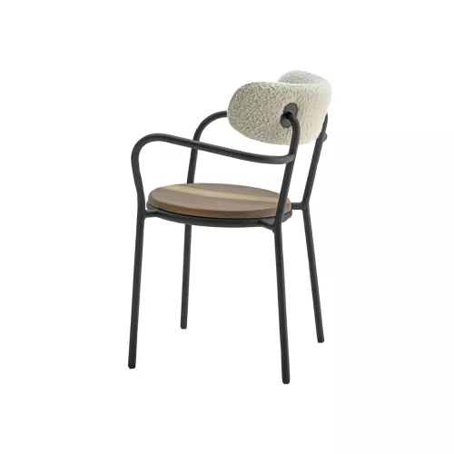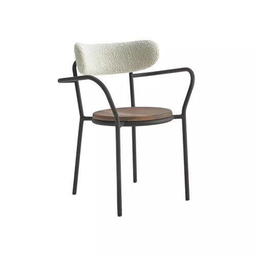 Der Zoey Stuhl besitzt ein fixes, pulverbeschichtetes Metallgestell mit einem Rückenrohr Ø20x1,5 mm. Die Schale aus mehrschichtigem Naturbuchenholz ist wahlweise furniert oder gepolstert, ausgestattet mit schwer entflammbarem Schaumstoff. Perfekt für Gastronomie, Büros oder öffentliche Bereiche.